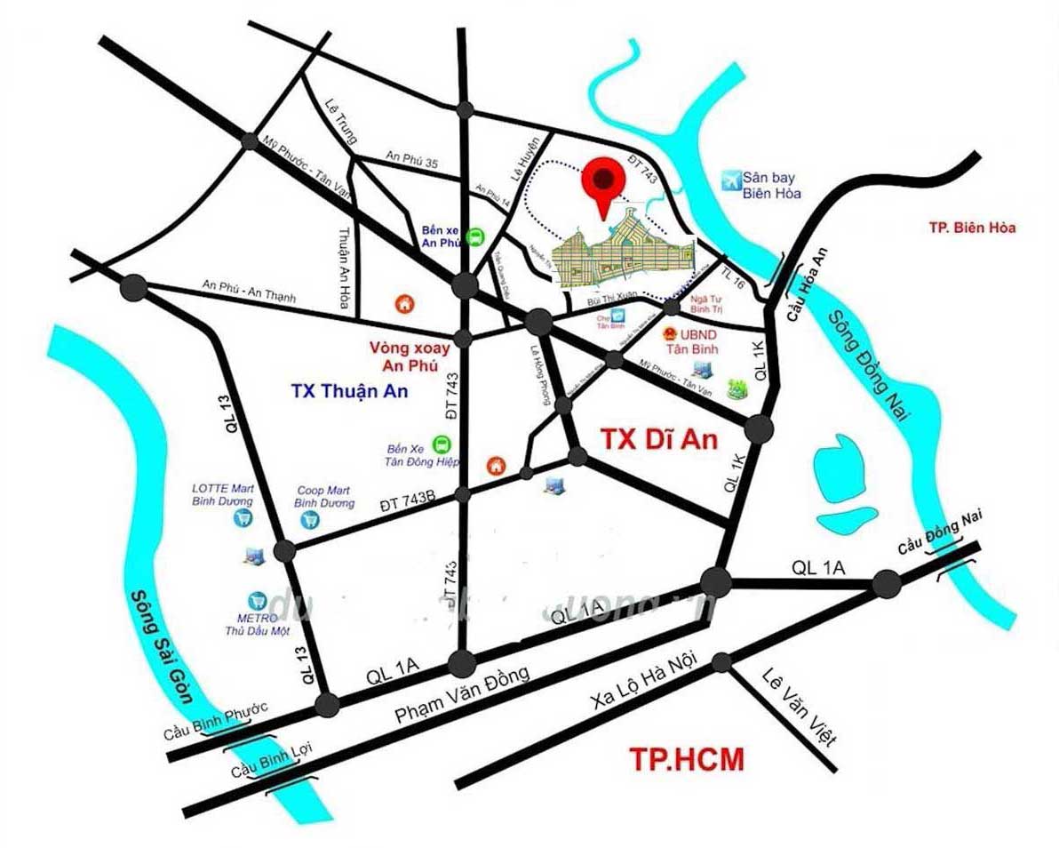 Bản đồ vị trí Đông Bình Dương City